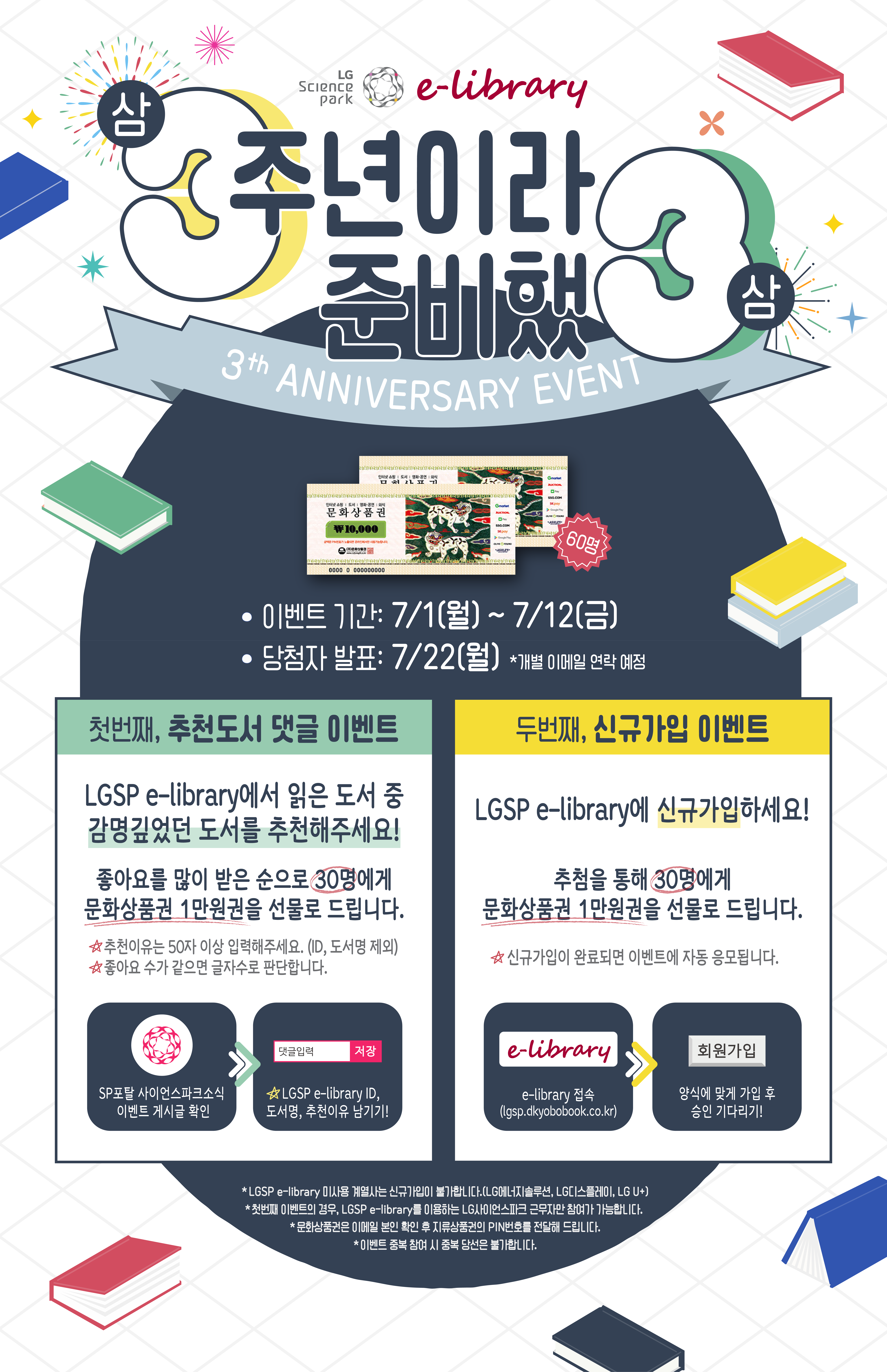 제목 | [EVENT] 3주년 감사 이벤트: 문화상품권 증정 (7/1~7/12) | ||